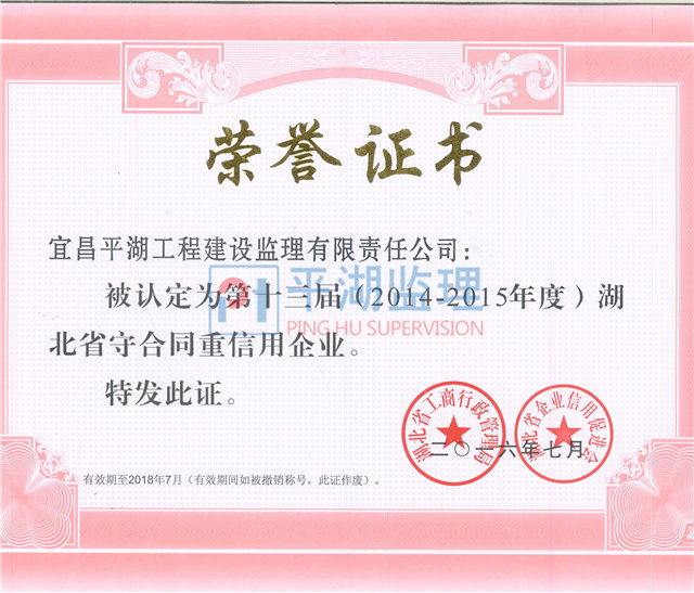 湖北省第十三届(2014-2015年度)守合同重信用企业
