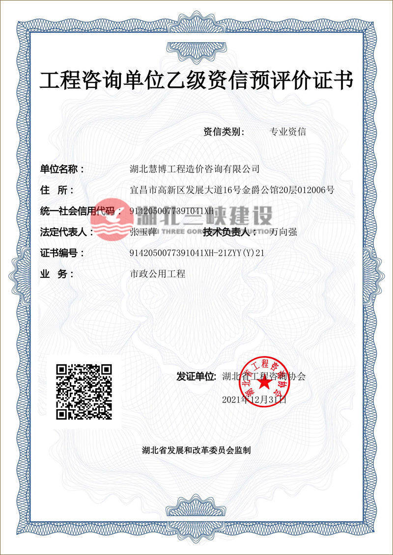 工程咨询单位乙级资信预评价证书