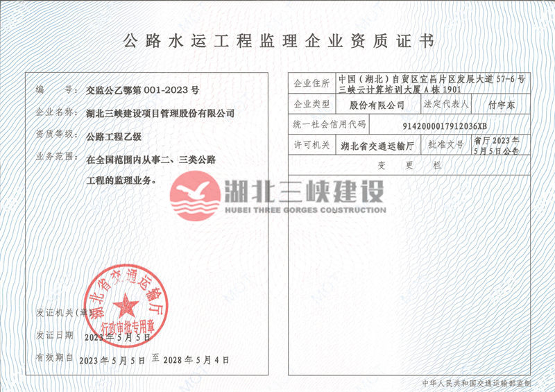 公路工程监理企业资质证书