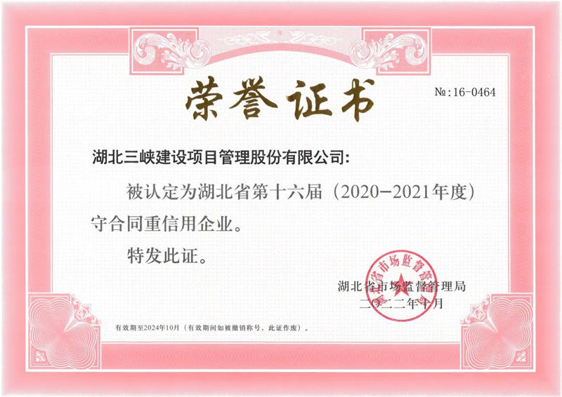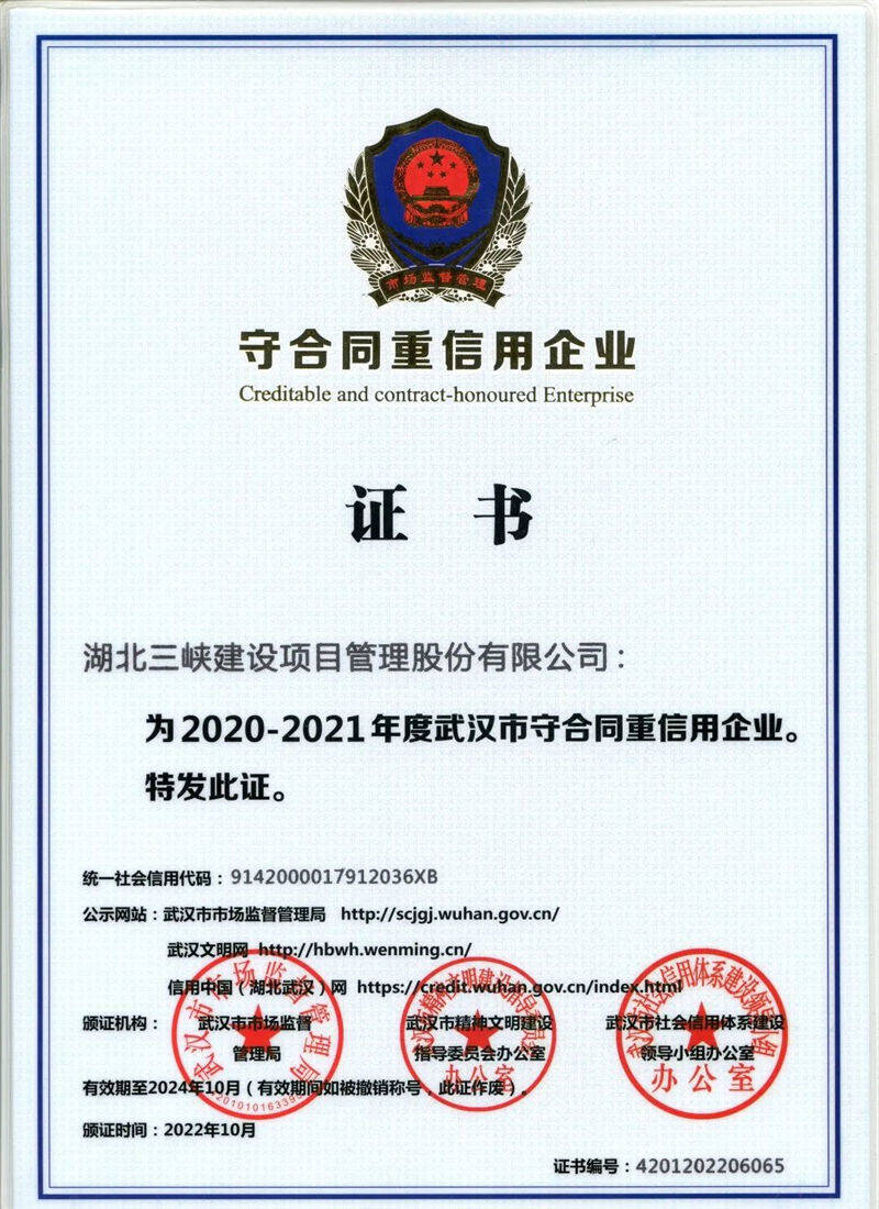 近四十年以来,三峡建设人恪守“科学、公正、诚信、开拓”的经营宗旨,秉持“通过过程控制实现投资价值最优化”的增值理念,践行“让业主满意、为社会尽责、使自己安心”服务原则,着力“打造具有增值服务价值和社会公信力的工程建设管理咨询企业“,努力为客户提供更精准的技术管理服务,努力为员工创造更美好的人生平台,努力为社会回馈更有益的正能量,广泛得到项目业主和建设行政管理部门的高度信任和支持。公司连续连续十六年获湖北省先进监理企业、连续十七年获湖北省守合同重信用企业,被中国建设工程造价管理协会信用评价为“AAA”等级,被中共宜昌市西陵区委授予优秀基层党组织荣誉称号。